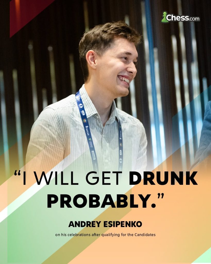 Otra cosa importante de Andrey Esipenko, es que se considera el heredero de la corona rusa, que hasta el día de hoy la mantiene el querido, talentoso y carismático Ian Nepomniachtchi, y quizás el siguiente en ascender a la élite.